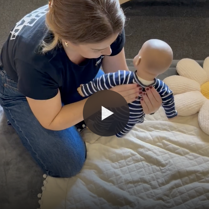 Also note that Kristin is using a doll and over exaggerating the movement in order for you to see what she’s doing. Please be gentle with your baby.